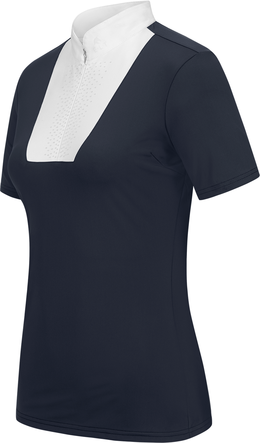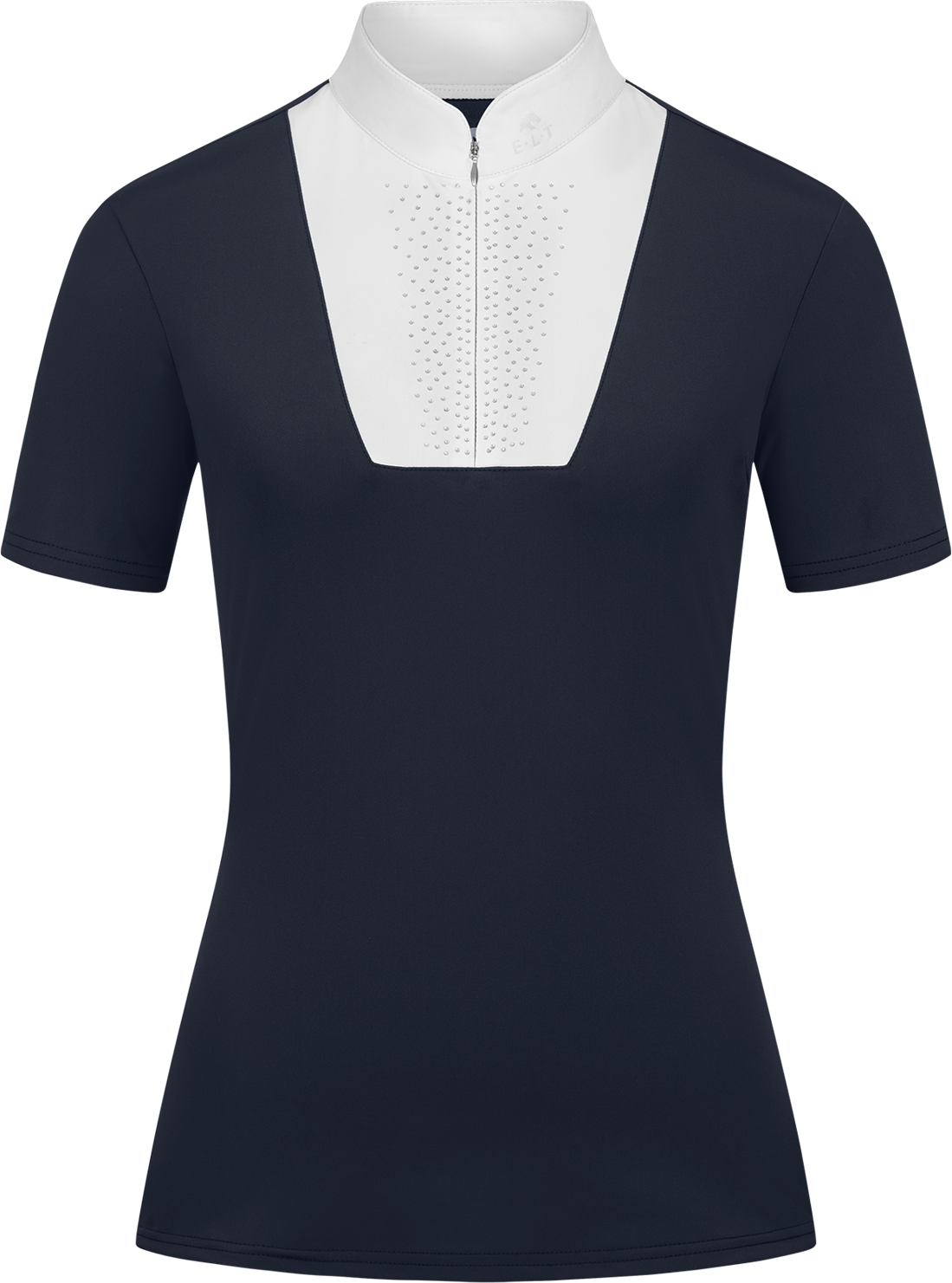 A particular eye-catcher is the front insert, which is set with subtle, decorative rhinestones to provide sparkling accents under a jacket. The elegant stand-up collar can be closed comfortably with the concealed zip, while the shimmering E·L·T logo print on the collar and back underlines the exclusive design. This allows professional performance to be combined with a touch of glamour.