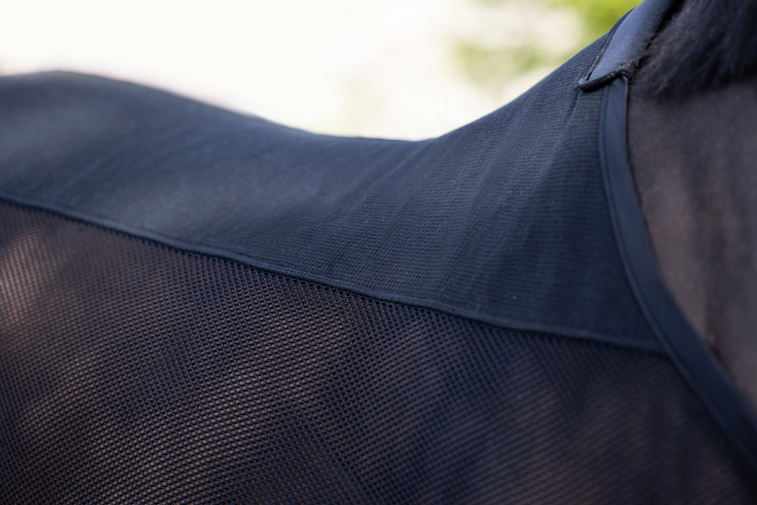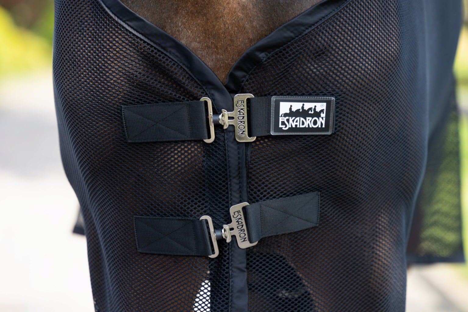 The Pro Cover Dura Fly Rug by Eskadron keeps your horse well protected on warm days. The robust polyester fabric keeps pesky insects at bay, while the soft cotton waffle piqué along the back ensures a comfortable fit. The rug features a generous cut with extra-deep sides, allowing plenty of freedom of movement.