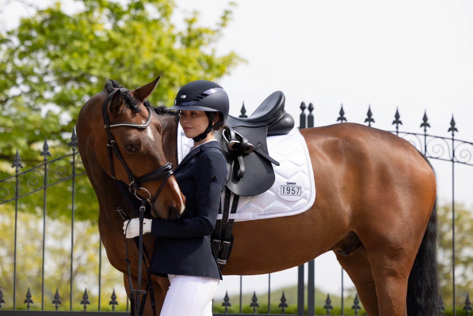 Discover the Eskadron Satin Crystal Saddle Pad – where elegant style meets everyday practicality. The luxurious satin top delivers a sleek, glossy finish, while the breathable Cool-Dry lining keeps your horse comfortable under the saddle. The innovative InnoStrap system ensures secure front fastening, and the detachable faux fur wither pad adds extra softness where it counts. Perfect for training or competitions – with no need to compromise on looks.