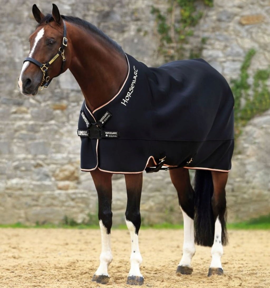 This stylish, durable cooler or sweat rug is suitable for use all year round. In summer, it ensures optimal air circulation, while in winter, it keeps your horse warm and comfortable. The absorbent inner lining quickly draws moisture away from your horse’s skin and wicks it efficiently to the outside. Thanks to its smooth outer surface, hay and shavings won’t stick to the fabric.