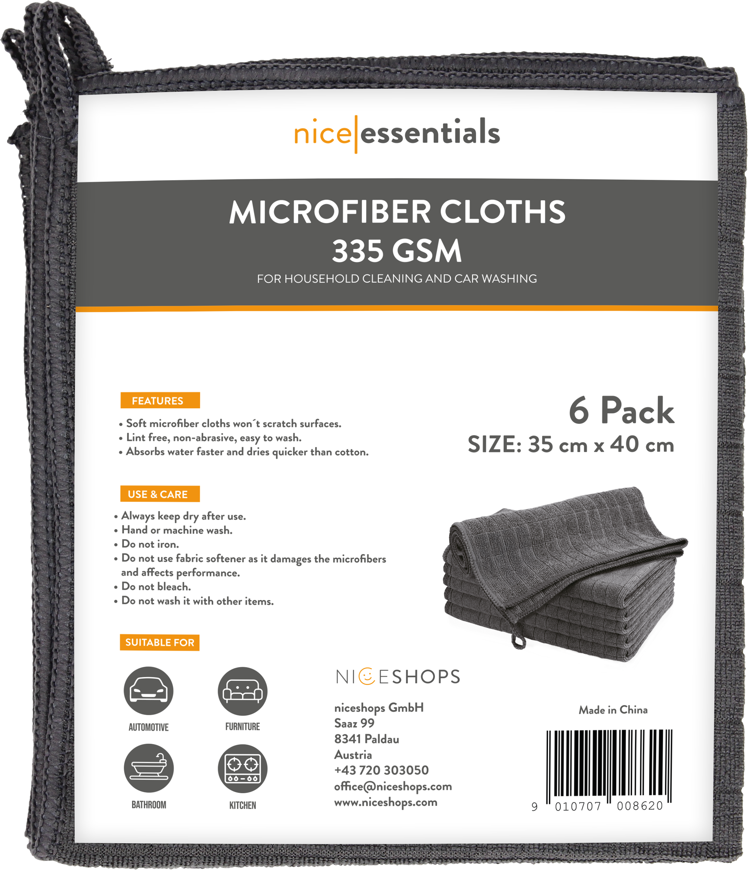 nice essentials Microfibre Cleaning Cloths 35 x 40 cm Set, 6 Pcs