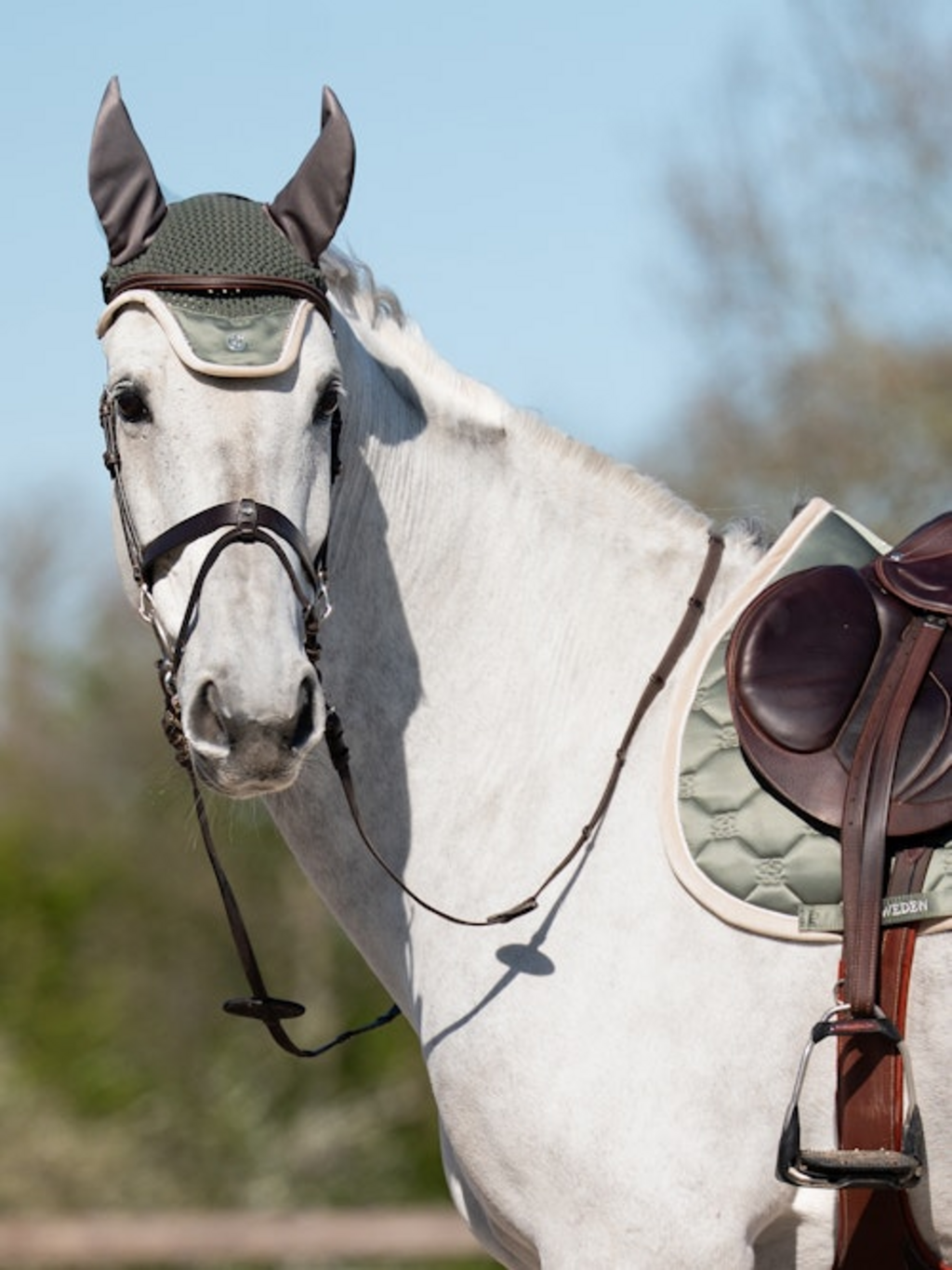 The Vintage Monogram Ear Bonnet is anatomically shaped for a secure fit, with elastic jersey ears for added comfort. The hand-crocheted front lends an elegant touch, while sparkling crystal trim and a glossy cord edge create eye-catching accents. A Velcro fastening at the back ensures the fly veil stays neatly in place on the bridle. Designed to keep insects away from the ears, it helps your horse stay focused during training and competition. The look is finished with the signature PS metal logo.
