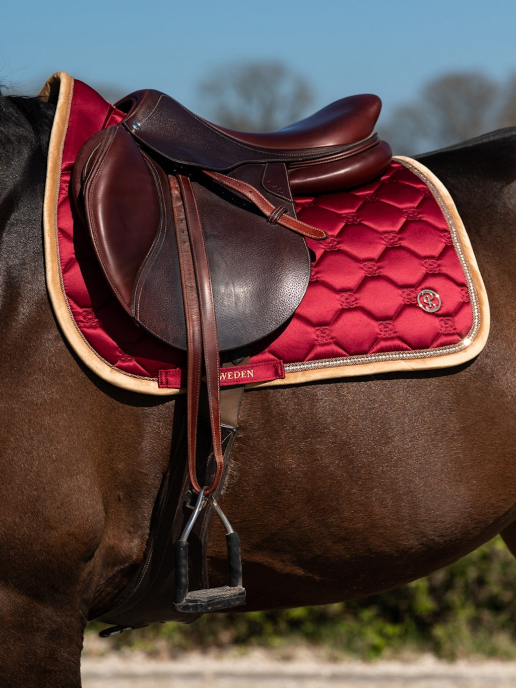 The anatomically optimised cut of this saddle pad provides extra wither clearance, giving your horse greater freedom of movement. Stop cushions keep it securely in place, while the quick-drying lining wicks away moisture and sweat for fast drying after exercise. Medium shock-absorbing padding ensures stability and comfort. A signature PS quote is embroidered along the spine, while the elegant satin upper fabric adds a refined touch. Complete the look with matching bandages and ear bonnet from the Vintage Monogram collection.