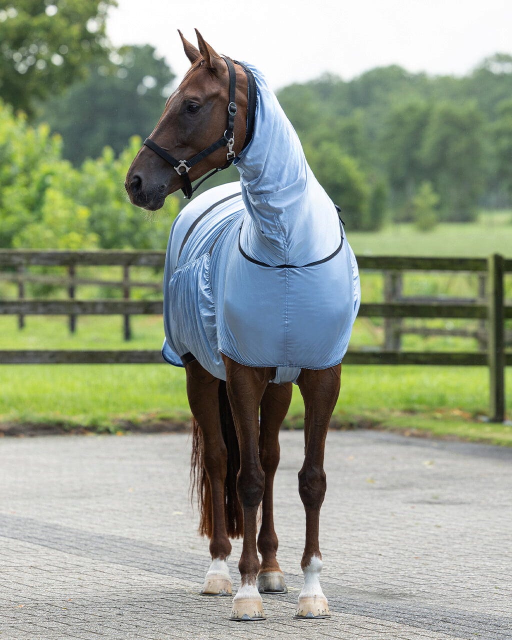 This eczema rug gives your horse the protection it needs against irritating midges and other biting insects. The specially developed, fine-mesh fabric acts as a protective barrier, preventing insects from reaching the skin and triggering irritation. A key feature of this design is the permanently attached neck section, which extends up to the head and provides seamless coverage for the sensitive mane area.