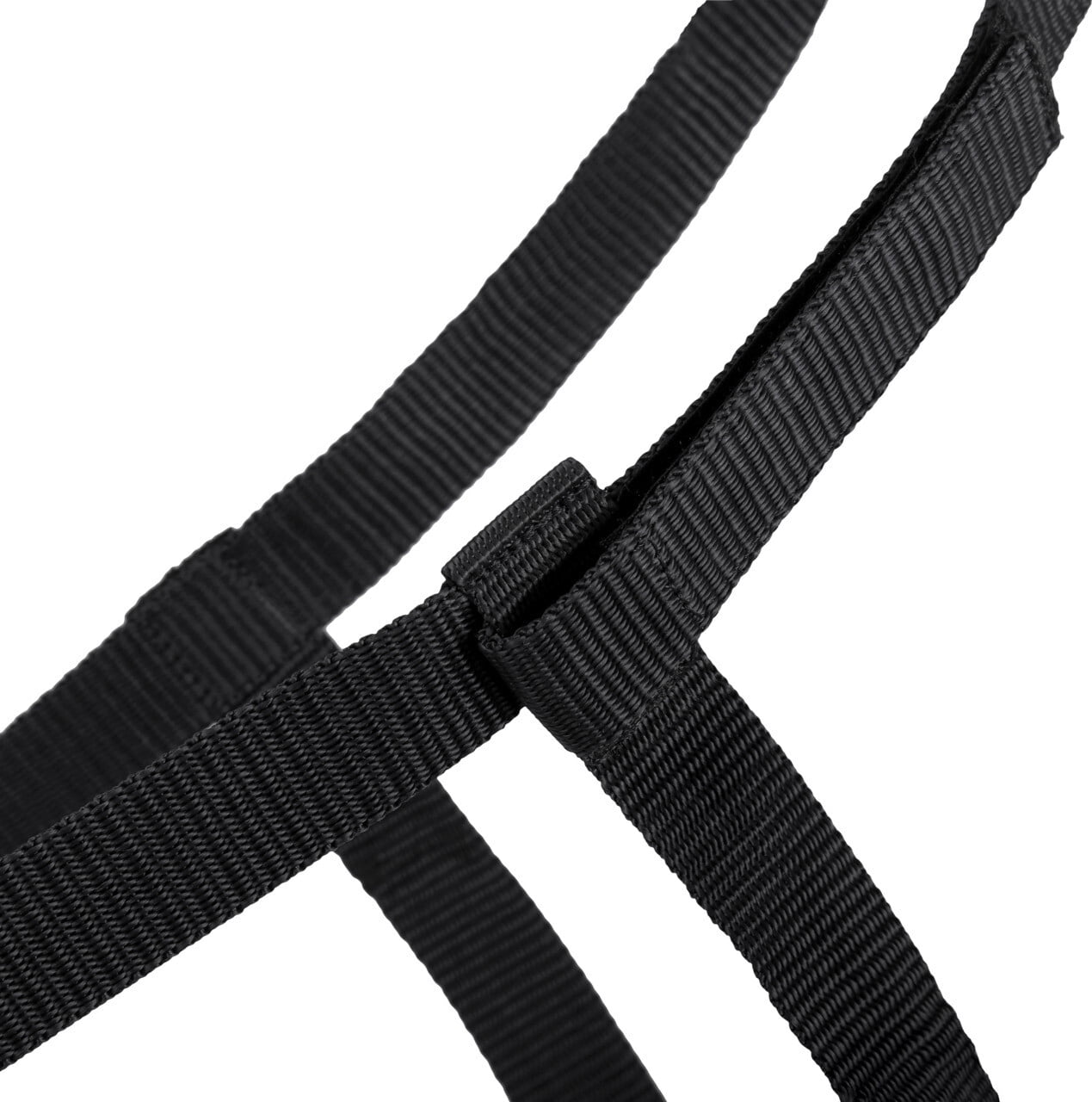 Hook and loop fastener at the neck opens when pressure is applied - in case the head collar is subjected to high tensile force (e.g. if it gets caught on a fence or other object), the hook and loop fastener opens automatically. This allows the horse to free itself and significantly reduces the risk of strangulation or serious injury.