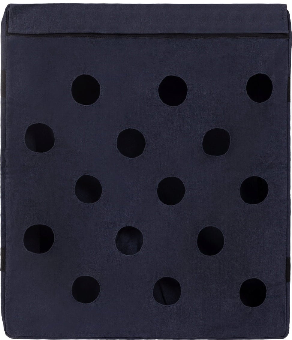 The hay cushion has a generous 80 litre capacity. It is ideal for outdoor use as it is water-repellent. Simply place it in the paddock. Filling it and closing it is very easy with the practical hook and loop Velcro fastener. The feeding holes have a diameter of 8 cm.