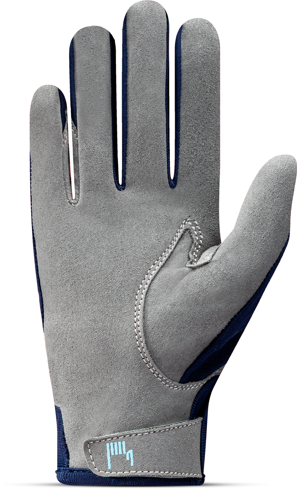 This riding glove is the perfect riding accessory for children who wish to perform the capriole at competitions. The stretchy material on the backhand is particularly flexible, thus allowing every movement to be performed effortlessly. The palm is made of soft yet robust DURADERO synthetic suede, which provides a secure grip on the (rubber) reins. The glove can be adjusted to fit perfectly around the wrist thanks to the Velcro fastener. A glittering stripe on the backhand makes this glove an eye-catcher at equestrian sports.