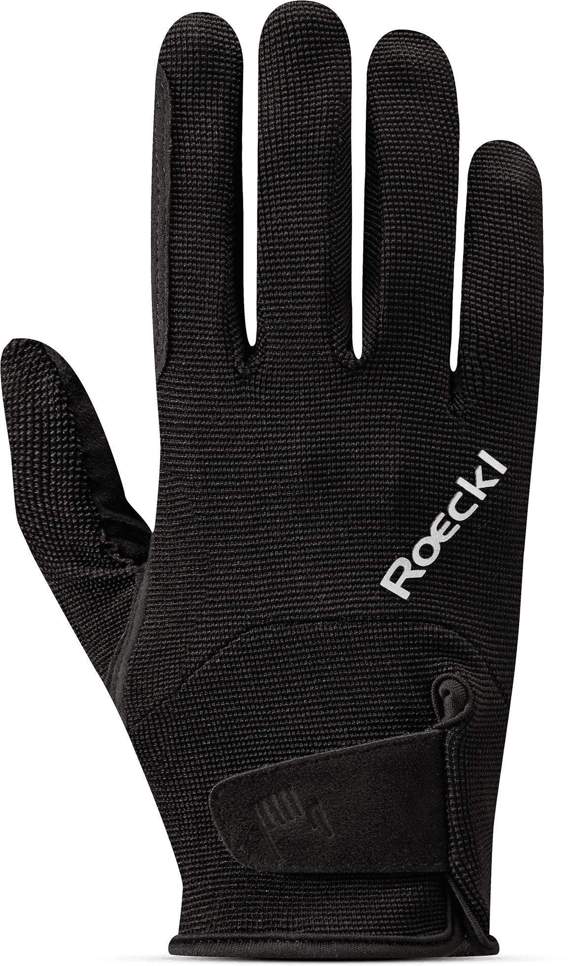 Thanks to two-way elastane on the backhand, the glove is particularly flexible and offers maximum freedom of movement, when in the saddle as well as in the stable. The palm is made entirely of ECO.SENSE® which ensures excellent grip and superb sensitivity when communicating with the horse. The Velcro fastener on the wrist can be adjusted for a secure fit. The special COMFORT-CUT seam guide on the index finger adds to the high wearing comfort. Ideal for use with rubber reins. The backhand is adorned with the ROECKL logo in white.