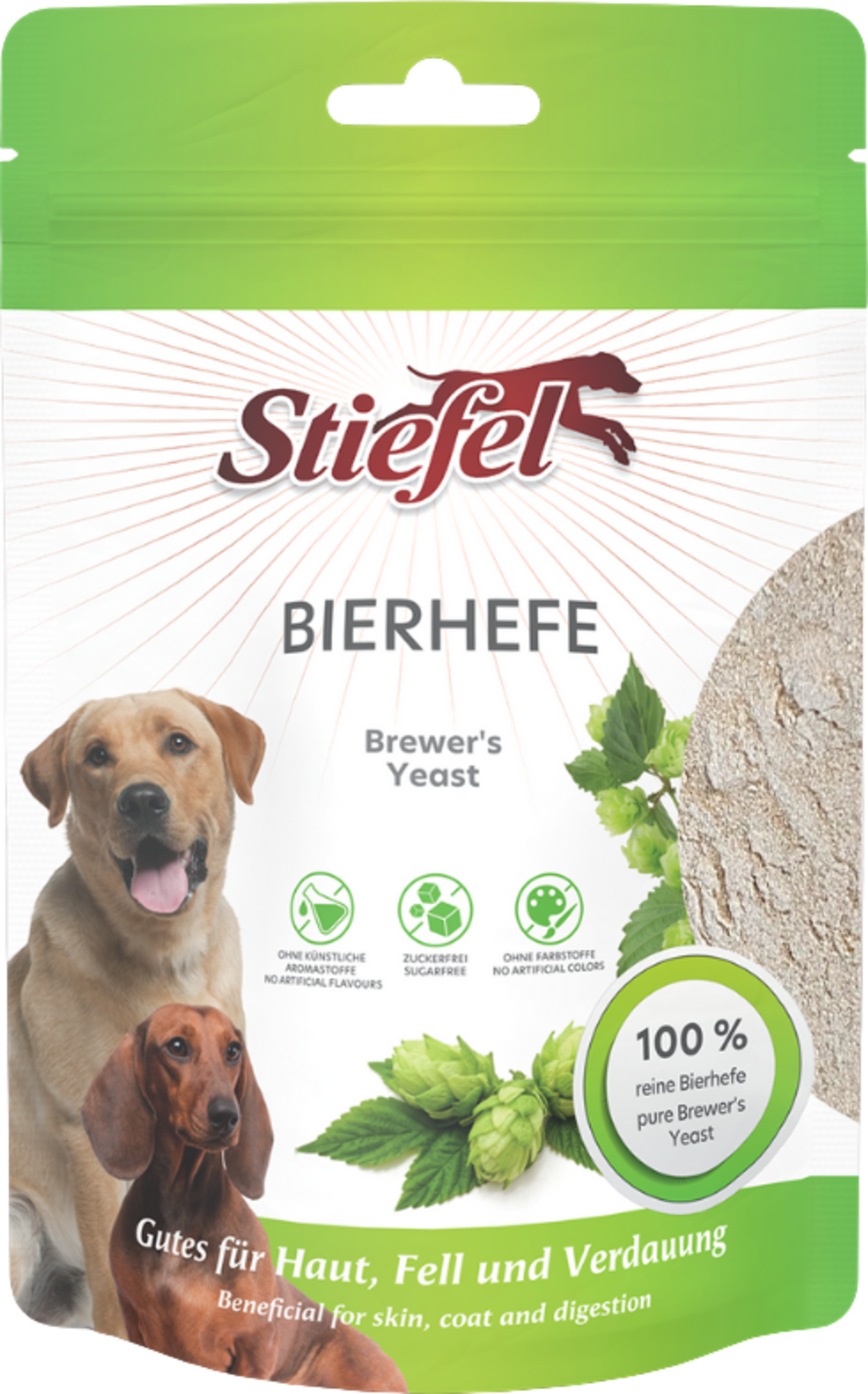 Stiefel Brewer's Yeast can contribute to normal digestion and metabolism in dogs thanks to the B vitamins naturally present in yeast. This makes brewer's yeast particularly suitable during the shedding season. For this product, 100% brewer's yeast is finely ground to ensure easy acceptance and absorption when mixed with food.