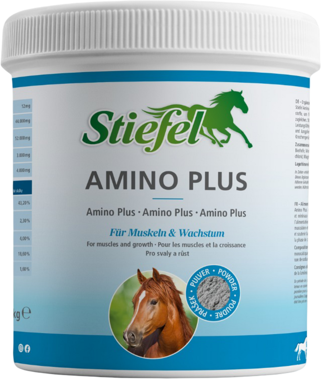 NOW WITH A NEW FORMULA.Stiefel Amino Plus contains essential amino acids and minerals, to compensate for nutritional deficiencies. Stiefel Amino Plus can promote muscle growth and performance in sport horses and foals and young horses in the growth phase build up the bone structure and support muscles.