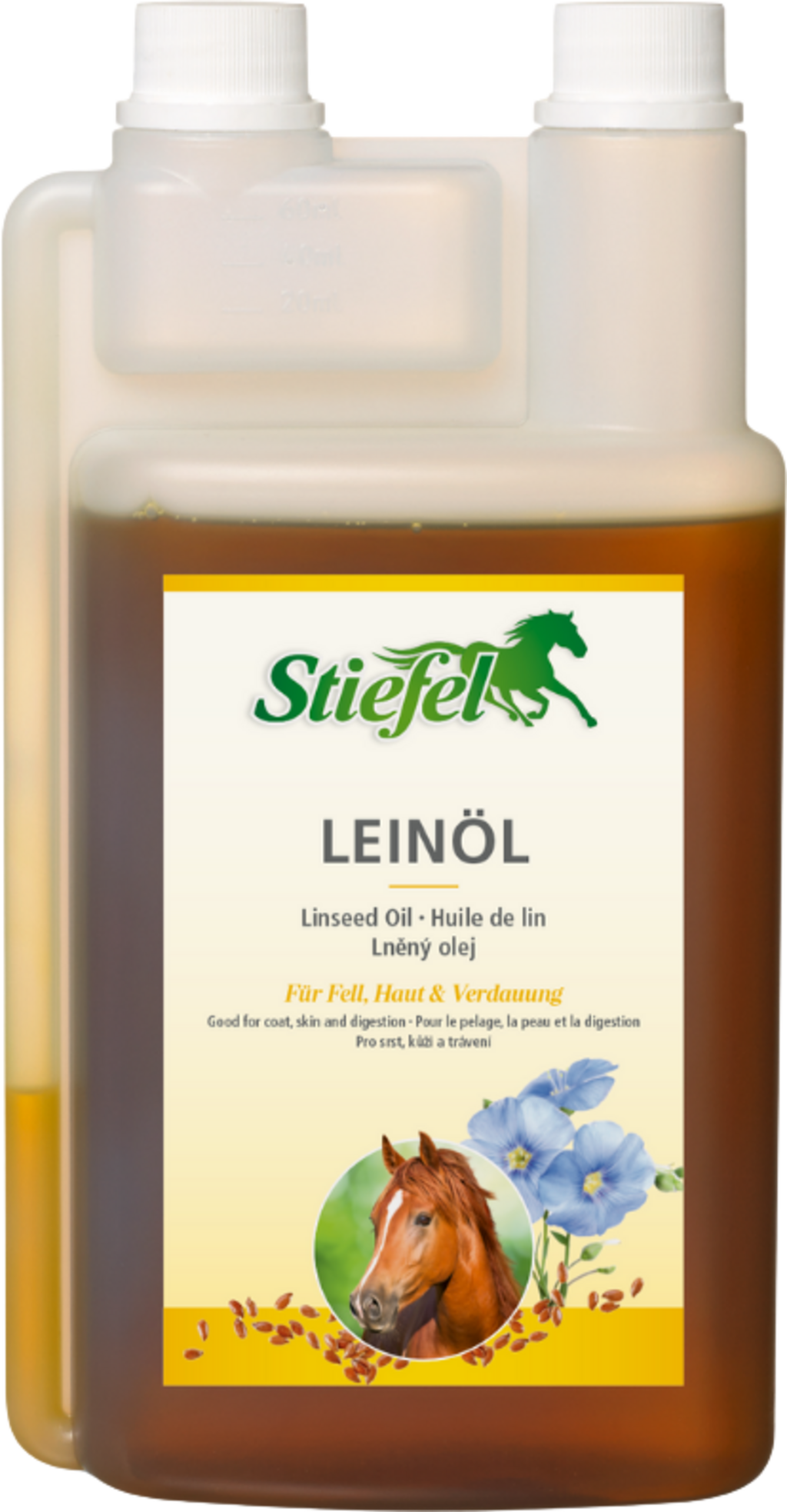 Stiefel Linseed Oil is a cold-pressed, pure natural product that is rich in omega-3 fatty acids, especially alpha-linoleic acid (C18:3), vitamin A, vitamin E and vitamin D. It can have a positive effect on the horse's skin and coat quality and contribute to healthy digestion.