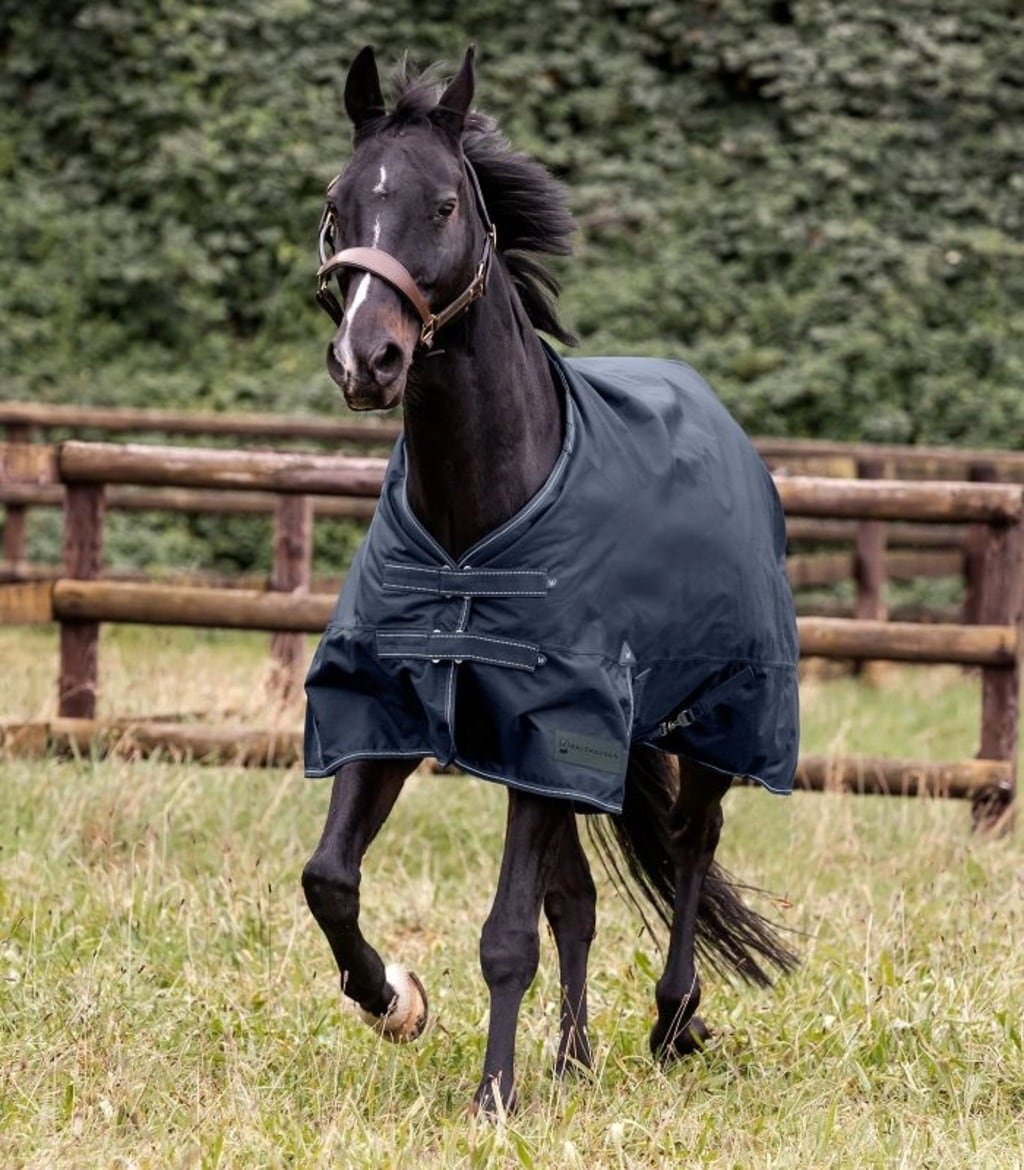 If you require reliable weather protection for your horse, the Arctic Outdoor Turnout Rug Light by Waldhausen is an excellent choice. Crafted from resilient 600-denier ripstop material, it is robust, waterproof, and breathable. The lightweight design and antibacterial lining ensure maximum comfort, allowing for unrestricted movement. The shoulder gusset is specifically cut to accommodate every motion, whether in the field or the paddock.